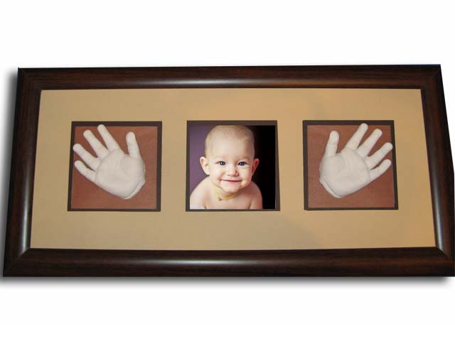 Классическая багетная рама для оформления слепков 2D ручек и ножек ребенка и фото ребенка.